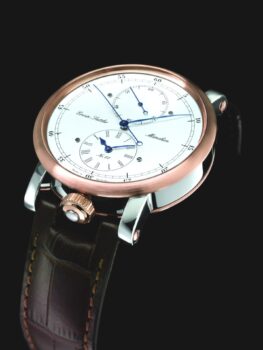 Die preisgekrönte Armbanduhr mit patentierter „Springender Sekunde“ ist derart erfolgreich, dass die Variante „Chronograph Classica Secunda“ fast zwangsläufig zu entwickeln war, um der Einzigartigkeit dieser Technik weitere Vielfalt zu verleihen.