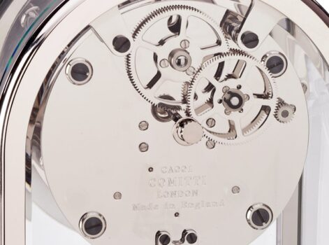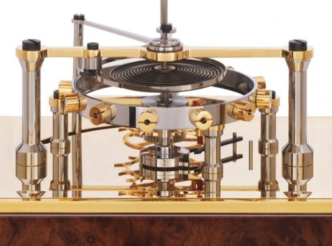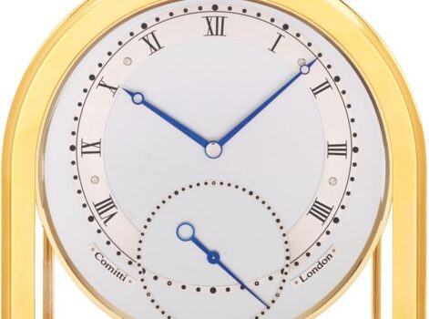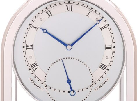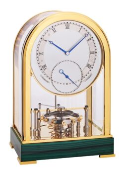 MERIDIAN Co-Axial ist die Bezeichnung dieser neuen Tischuhr aus England. Die Coaxialhemmung – ein echtes Stück Uhrengeschichte nach Dr. George Daniels (1926-2011) – erzeugt ein vergleichsweise lautes Ticken im Sekundentakt.