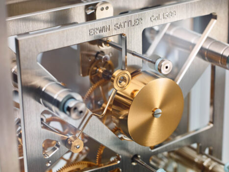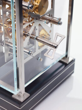 • freier Blick auf das Uhrwerk durch vier Mineralglasscheiben