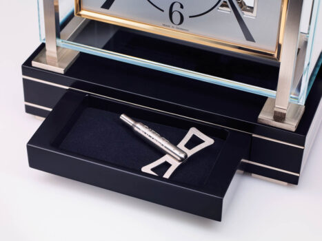 • Schublade im Sockel der Uhr für den Aufzugschlüssel